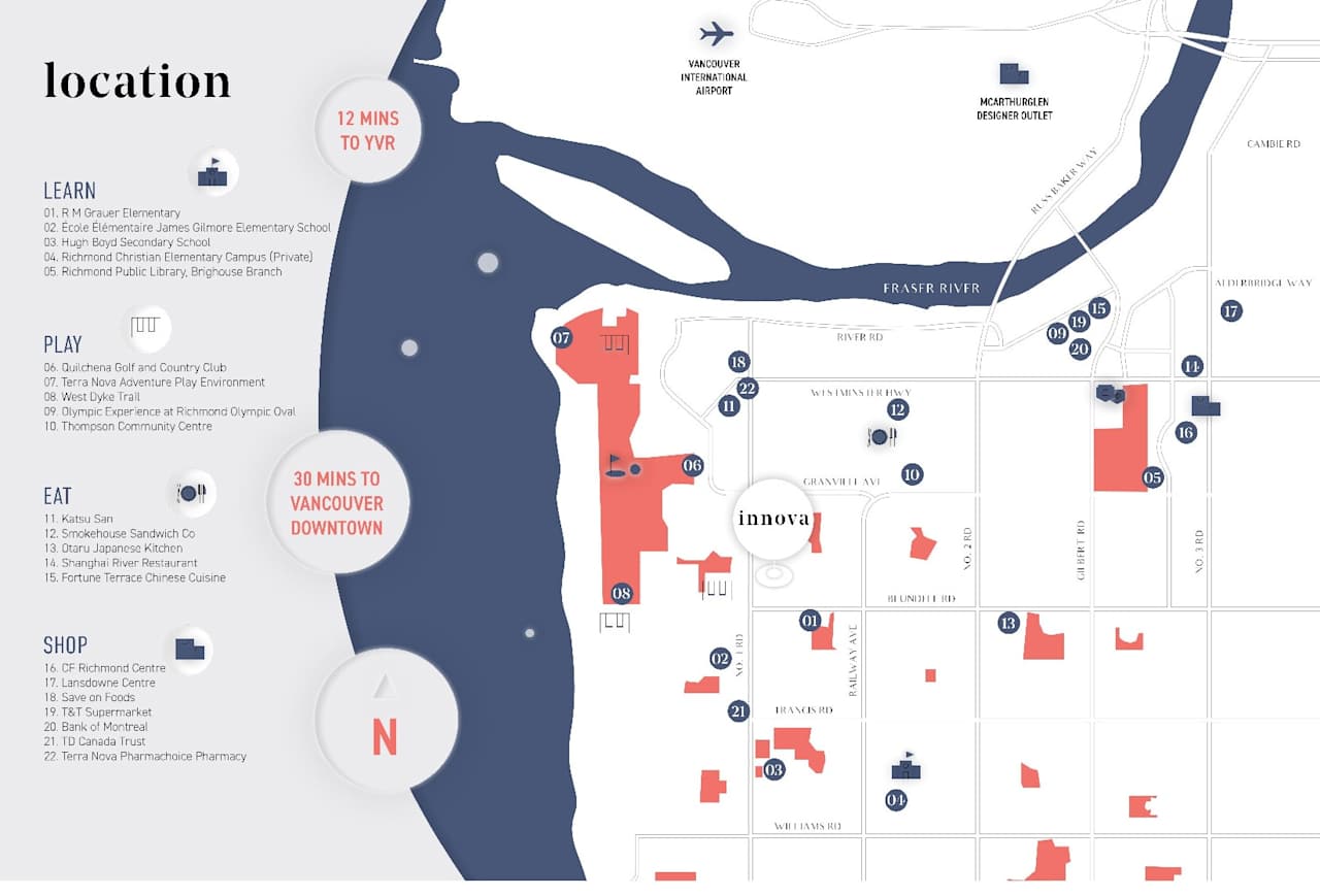 Located where the city meets the sea, Innova is west coast living at its finest. Explore the Terra Nova nature area, cycle along the West Dyke Trail, or enjoy a round of golf at the Quilchena Golf Course.