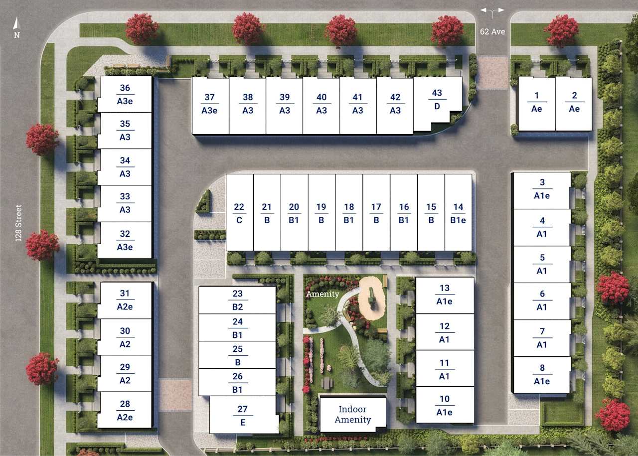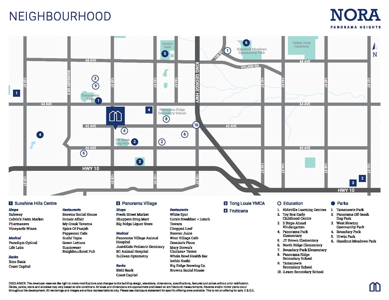 NORA is ideally located in the Panorama neighbourhood of Surrey, just minutes away from major commuter routes such as highways 10, 91, 99 and King George connecting you to the greatest amenities of Surrey and the Lower Mainland. Conveniently placed within walking distance to schools, parks and recreation for the whole family, and only a short drive up the road to a plentiful of shops, restaurants and all of life’s essentials.
