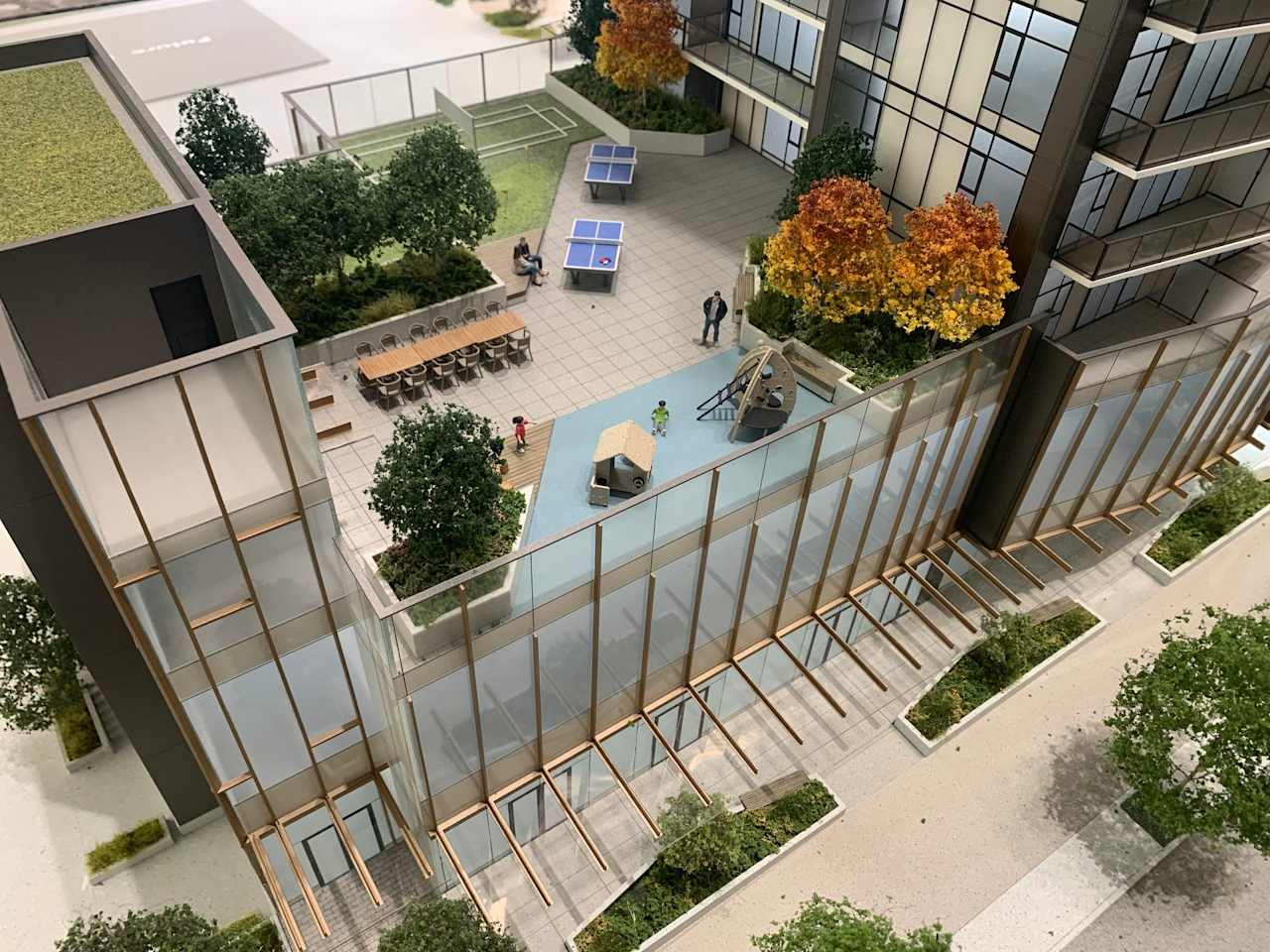 A new 1.14-acre city park at the centre of South Yards development will offer a large grassy area to accommodate a variety of community events. It will also feature picnic areas, benches, and a small café. Building-specific amenities will be finalized in the separate phased development applications.
