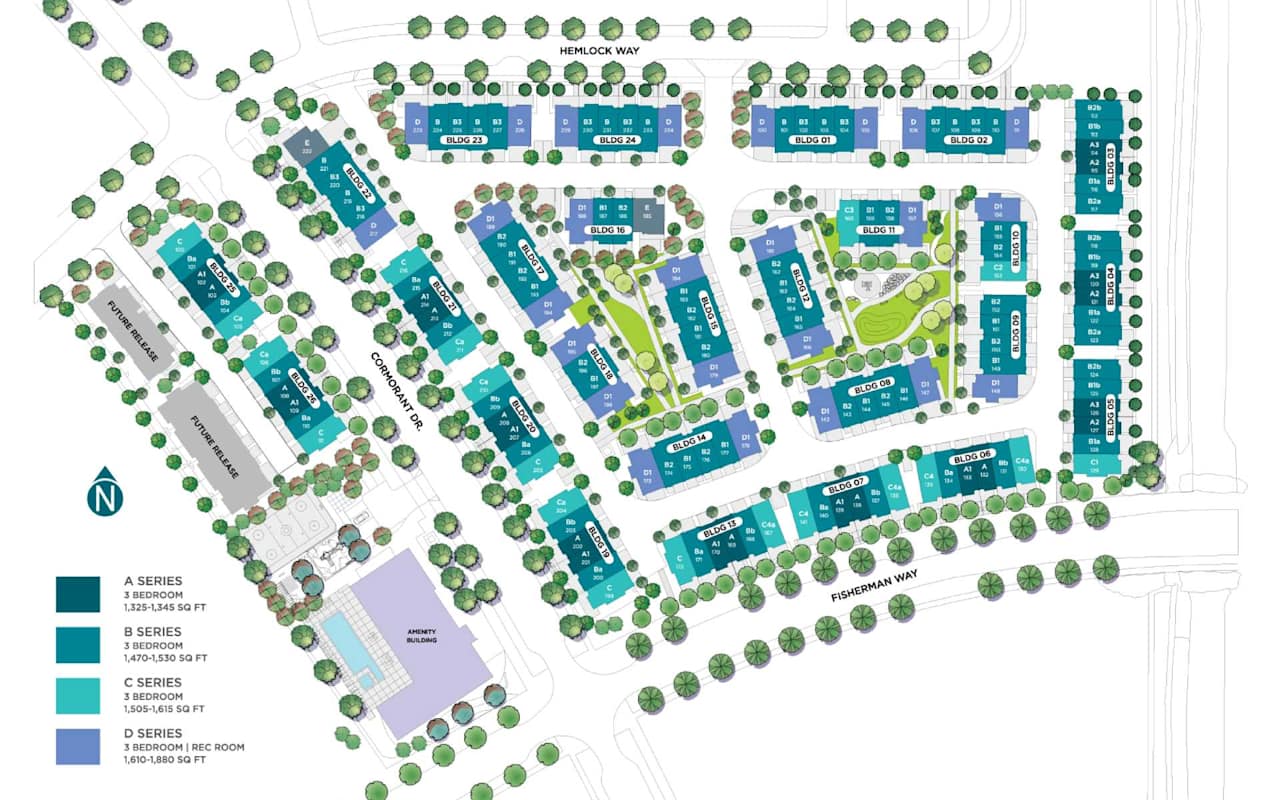 A collection of Craftsman-style single family homes situated within a thoughtfully designed master-planned community. Signature architectural elements include welcoming verandas at the entry to your home, steeply pitched gable roofs, and varied build elevations accented by a range of exterior colour palettes.