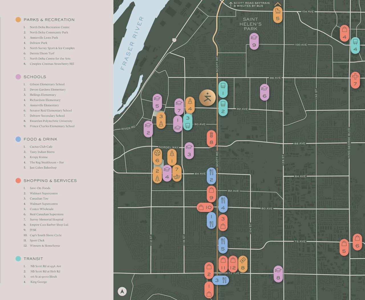 Walker House is perfectly positioned within a lively destination, neatly tucked along 120th Street and Scott Road; a short drive to the Scott Road and King George SkyTrain stations, retail, groceries, and more.